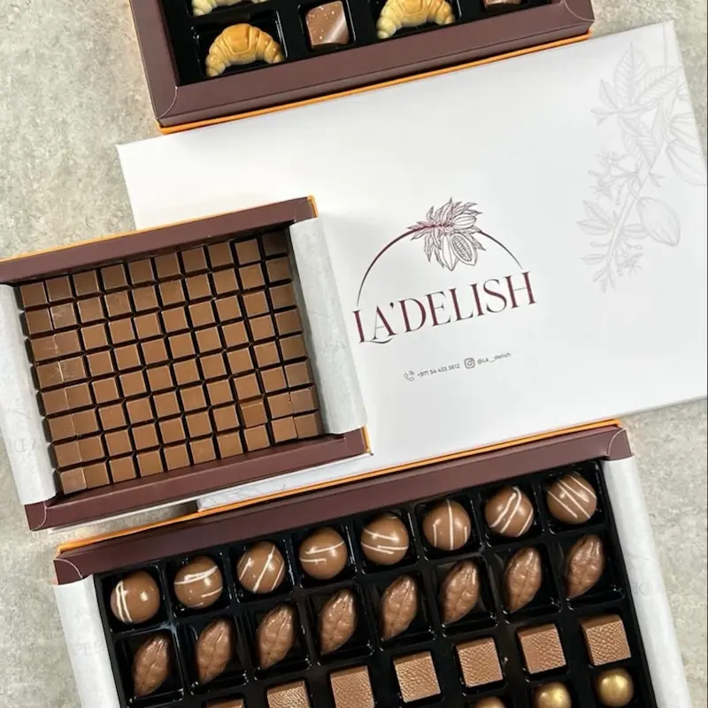 بكچ شوكولاته مكون من ثلاث بوكسات بحشوات مختلفه