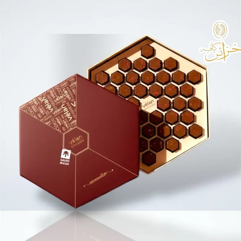 - صنع في: المملكة العربية السعودية (Saudi Made) بواسطة شركة بركان الشوكولاتة المحدودة.